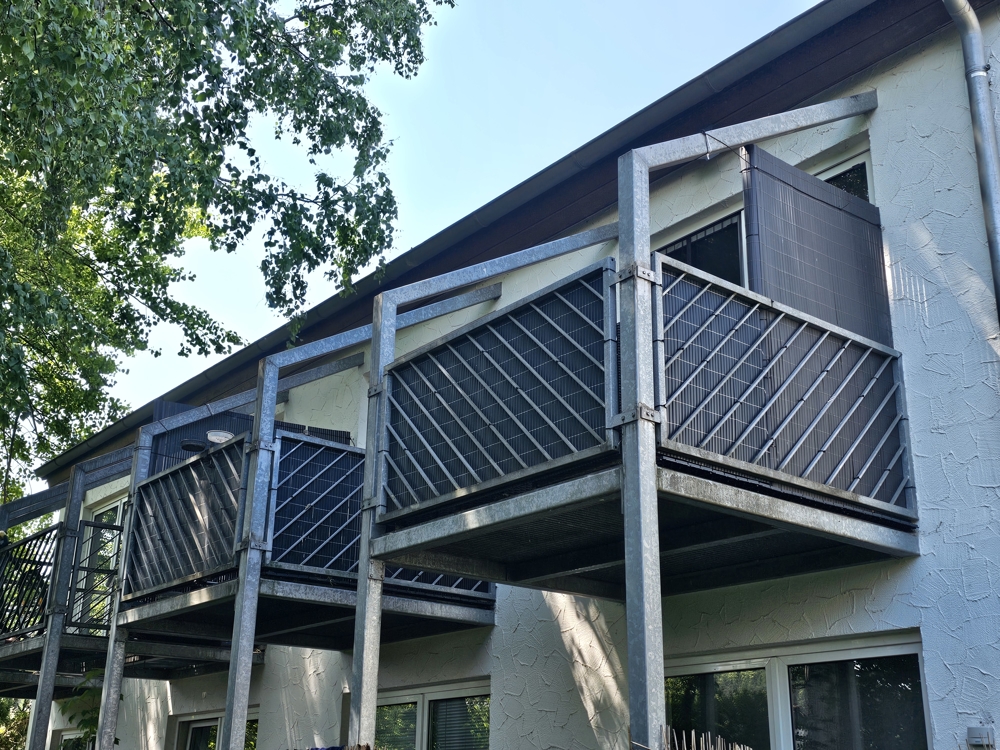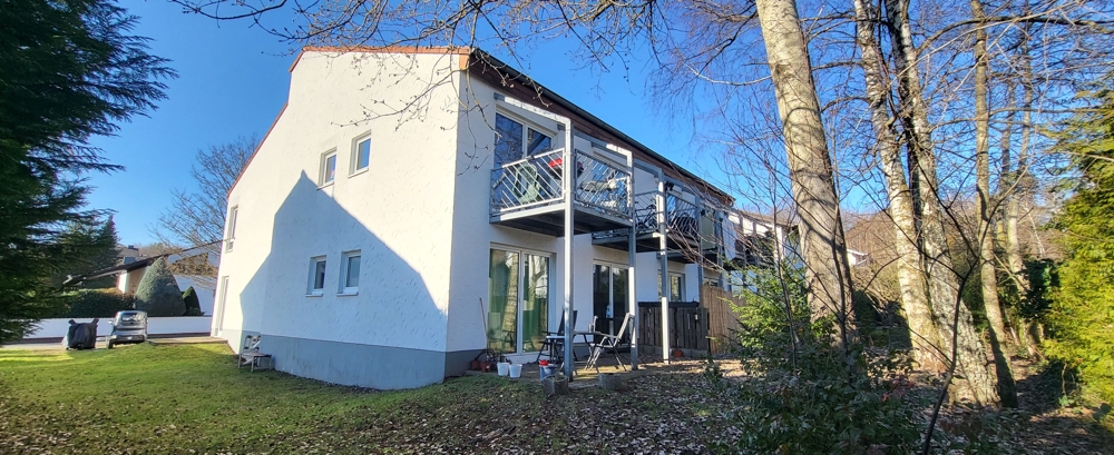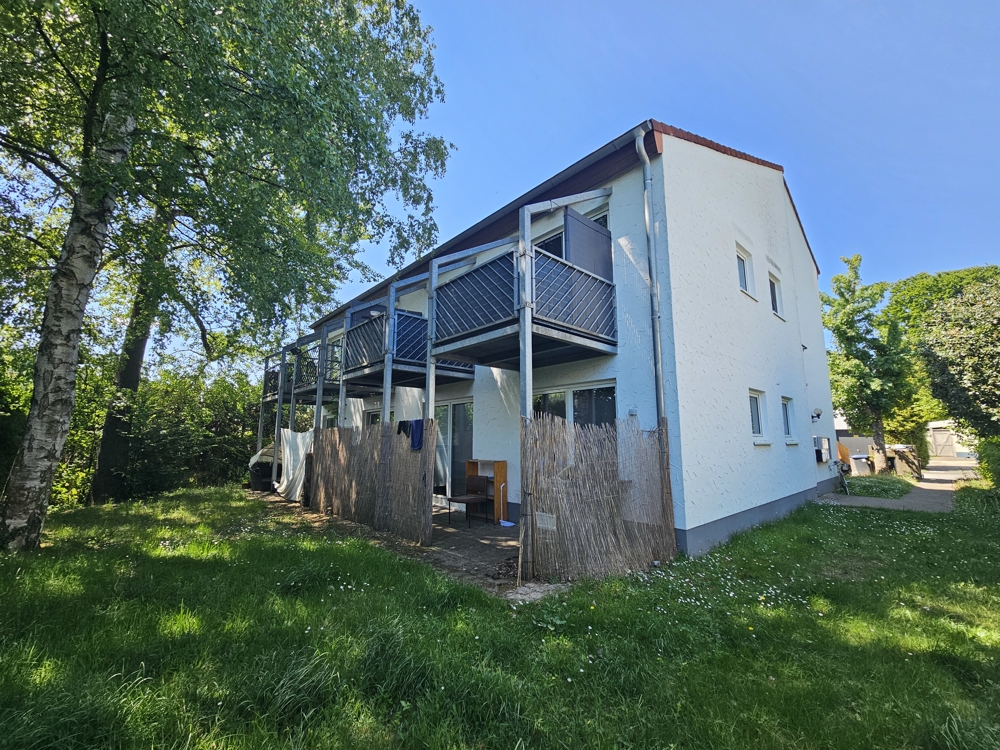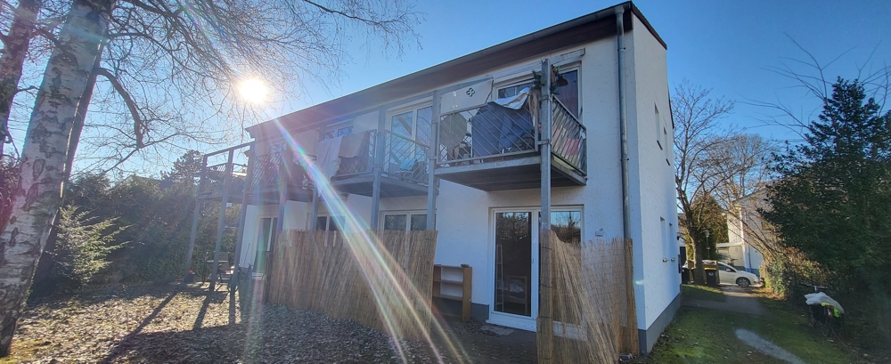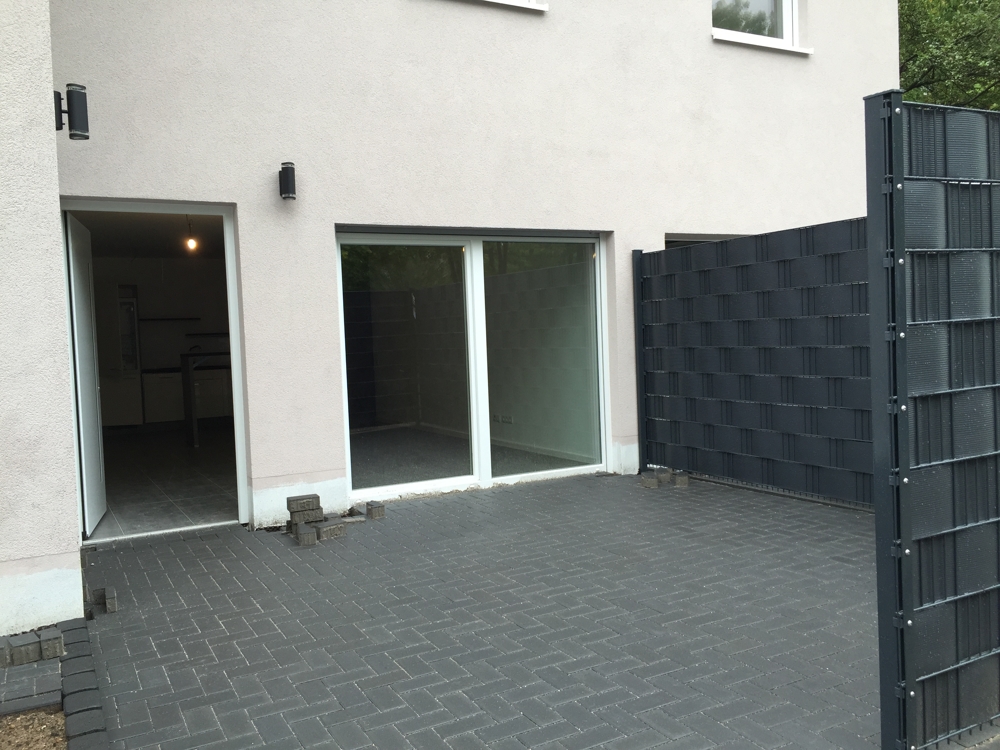 Die Terrasse, mit Sichtschutz versehen, bietet sich zum Grillen und Chillen an. Eine Garage ist Bestandteil des Miteigentumsanteils und wird - ebenso wie der davorliegende Stellplatz - mit verkauft.