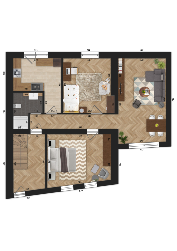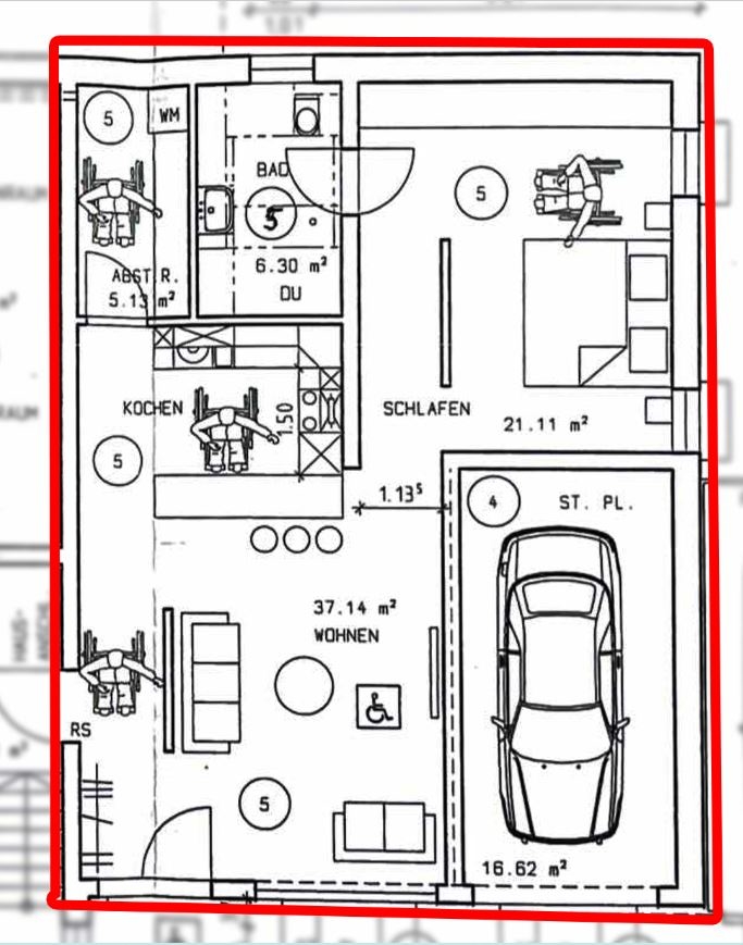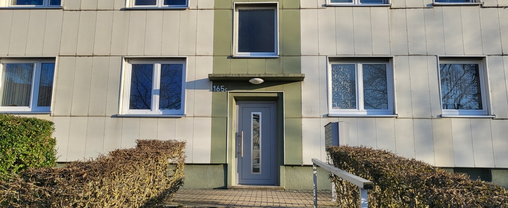 Der eigene Zugang zur Wohnung ist barrierefrei. Die weiteren Wohnungen in den Obergeschossen sind durch ein eigenes Treppenhaus erschlossen.